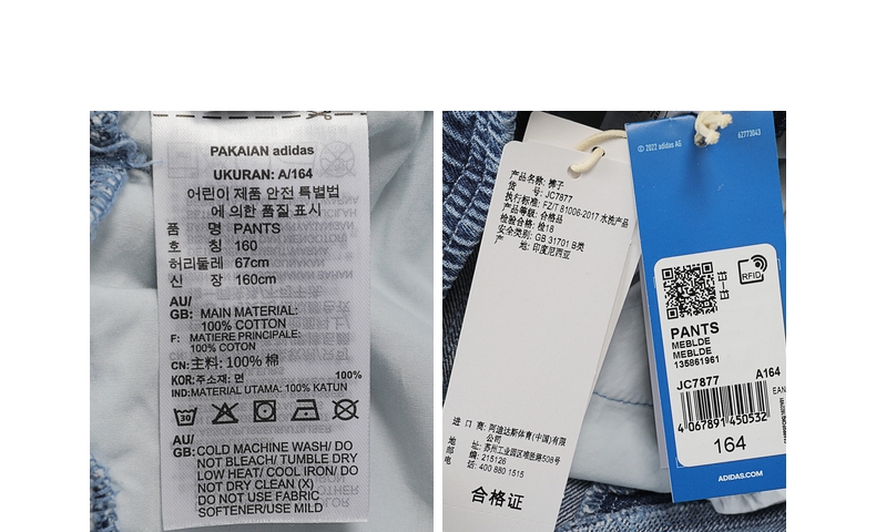 • adidas Originals阿迪三叶草2025男大童PANTS牛仔长裤JC7877
