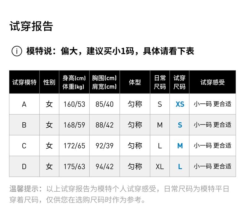 身高/胸围 165/72A 165/76A 165/80A 170/84A 170/88A 170/92A 175/96A 175/100A