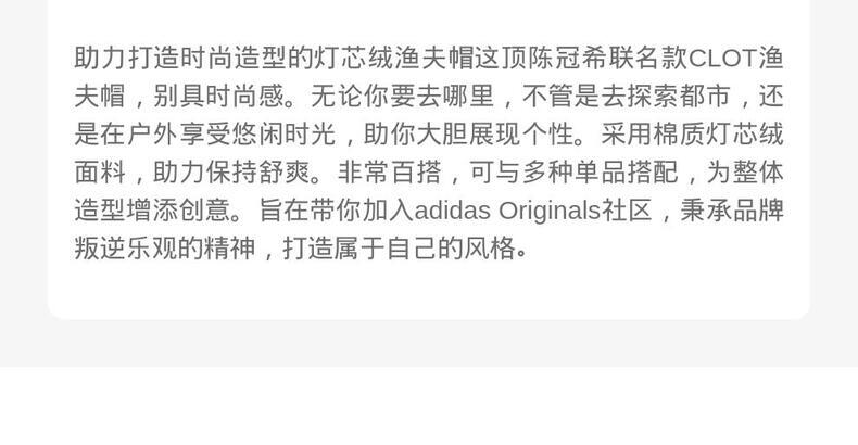 Originals(三叶草),adidas品牌旗下的运动经典系列,在全球各地有众多的追求者和拥有者。该系列以三叶草为标志,如同地球立体三维的平面展开,像一张世界地图,象征着三条纹延伸至全世界。这一系列大量运用20世纪40年代到80年代的元素作为设计灵感,具有强烈的复古感。adidas Originals是对阿迪达斯经典产品的传承。