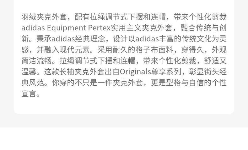 • Adidas Original阿迪三叶草2025男子EQT JKT厚羽绒服-短JV7653