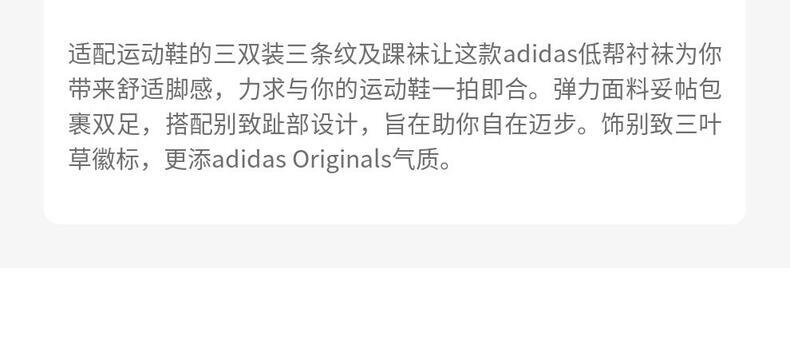 • Adidas Original阿迪三叶草2026中性ORI TREF ANK 3P短袜优惠装KW1158