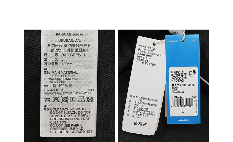 • Adidas Original阿迪三叶草2025男子RAC CREW U针织无帽卫衣JM8037