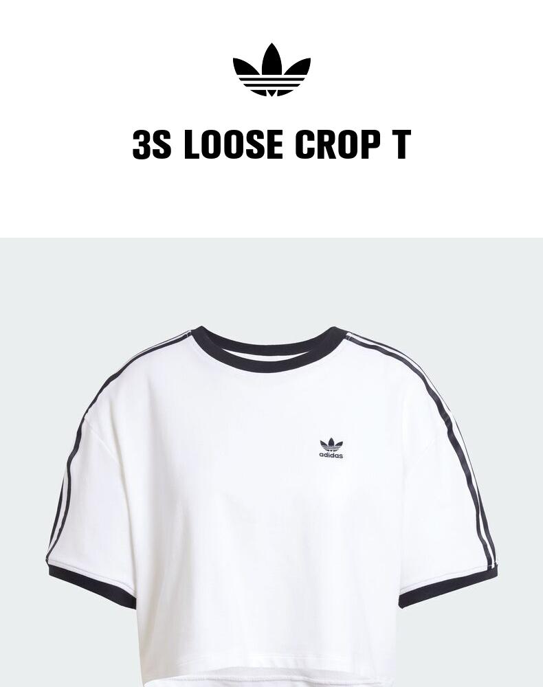 • adidas Originals阿迪三叶草2025女子3S LOOSE CROP T针织无领短TJC8150