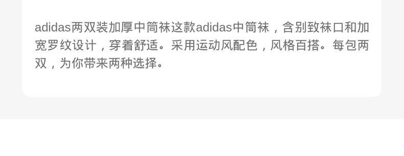 • adidas Originals阿迪三叶草2025中性3S RIB CR S 2P中袜优惠装JX5203
