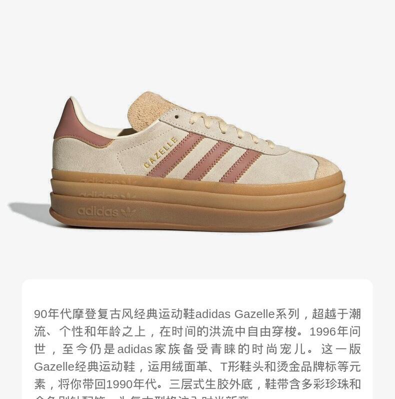 adidas Originals阿迪三叶草2025中性GAZELLE BOLD WORI-CLASSICJS3893