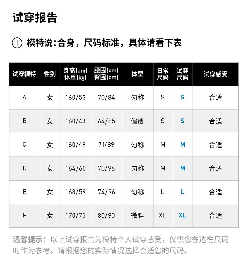 | 下装尺码 | 155/64A | 160/68A | 165/72A | 170/76A | 170/80A | 175/84A |