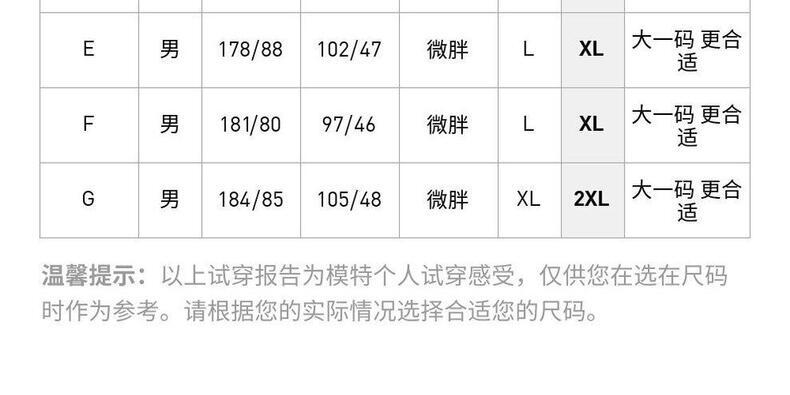 | 参考身高(cm) | 163 | 166 | 169 | 172 | 175 | 178 | 181 | 184 | 186 | 188 | 190 | 190 | 190 |