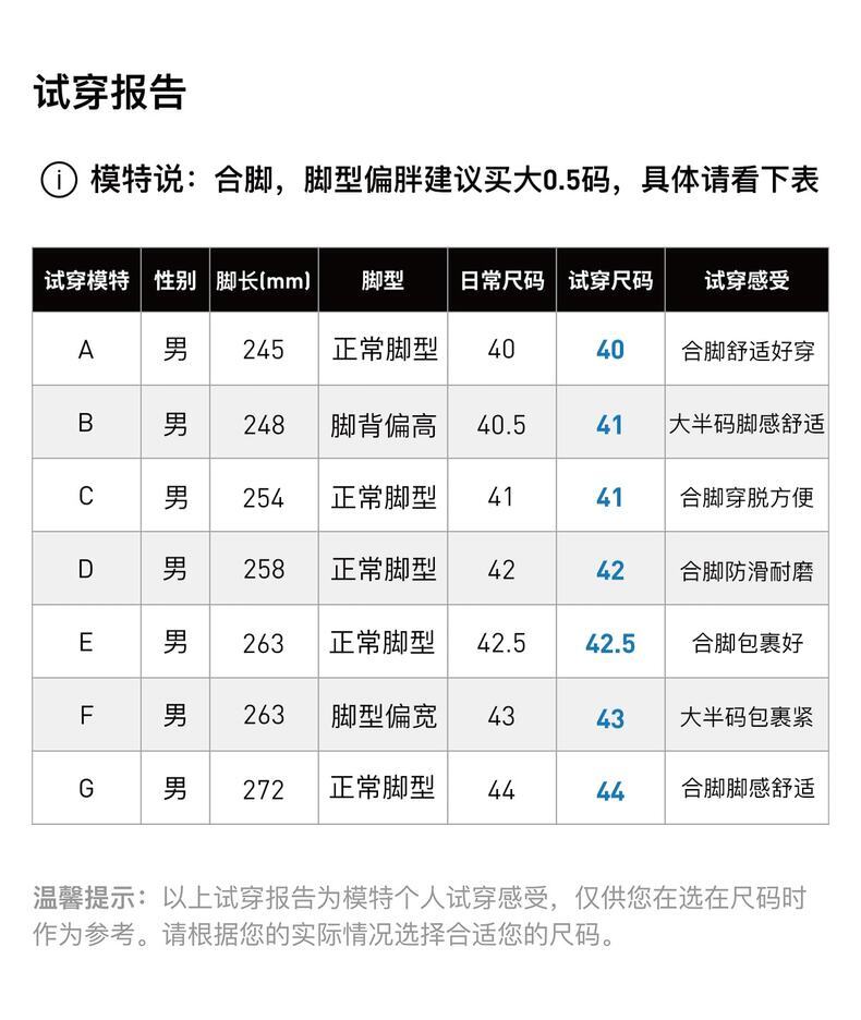 | 中国码(CHN) | 21.5 | 22 | 22.5 | 23 | 23.5 | 23.5 | 24 | 24.5 | 25 | 25.5 | 26 | 26.5 | 26.5 | 27 | 27.5 | 28 | 28.5 | 29 | 29 |