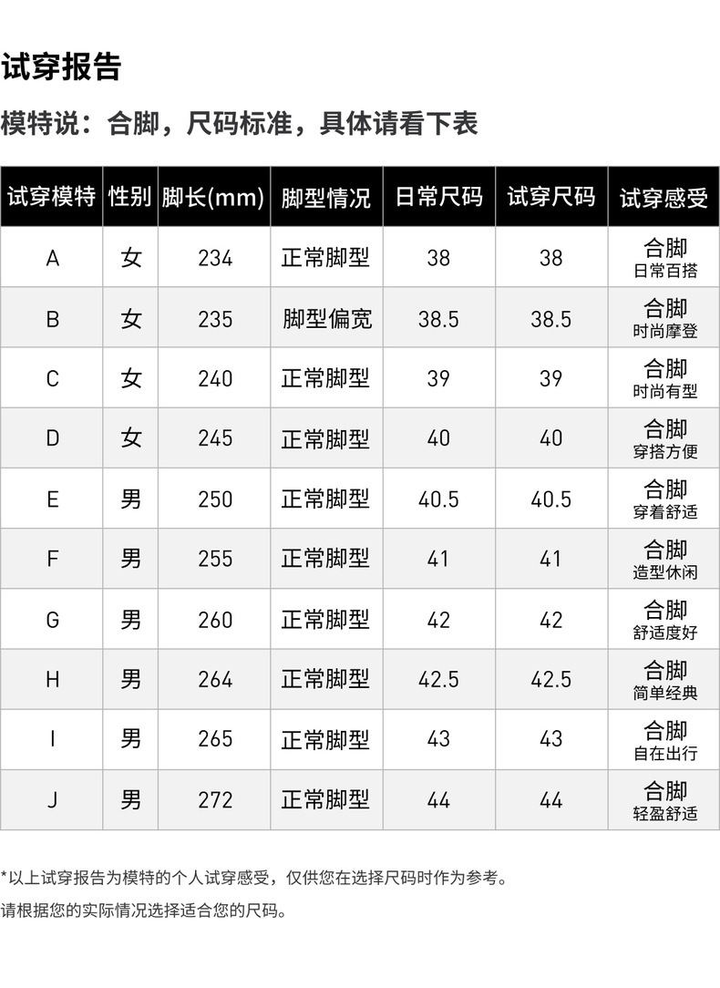 | 中国码(CHN) | 21.5 | 22 | 22.5 | 23 | 23.5 | 23.5 | 24 | 24.5 | 25 | 25.5 | 26 | 26.5 | 26.5 | 27 | 27.5 | 28 | 28.5 | 29 | 29 |