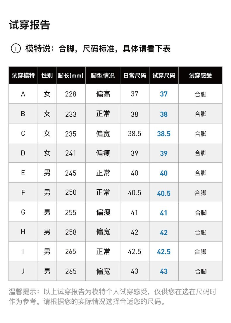 | 中国码(CHN) | 21.5 | 22 | 22.5 | 23 | 23.5 | 23.5 | 24 | 24.5 | 25 | 25.5 | 26 | 26.5 | 26.5 | 27 | 27.5 | 28 | 28.5 | 29 | 29 |