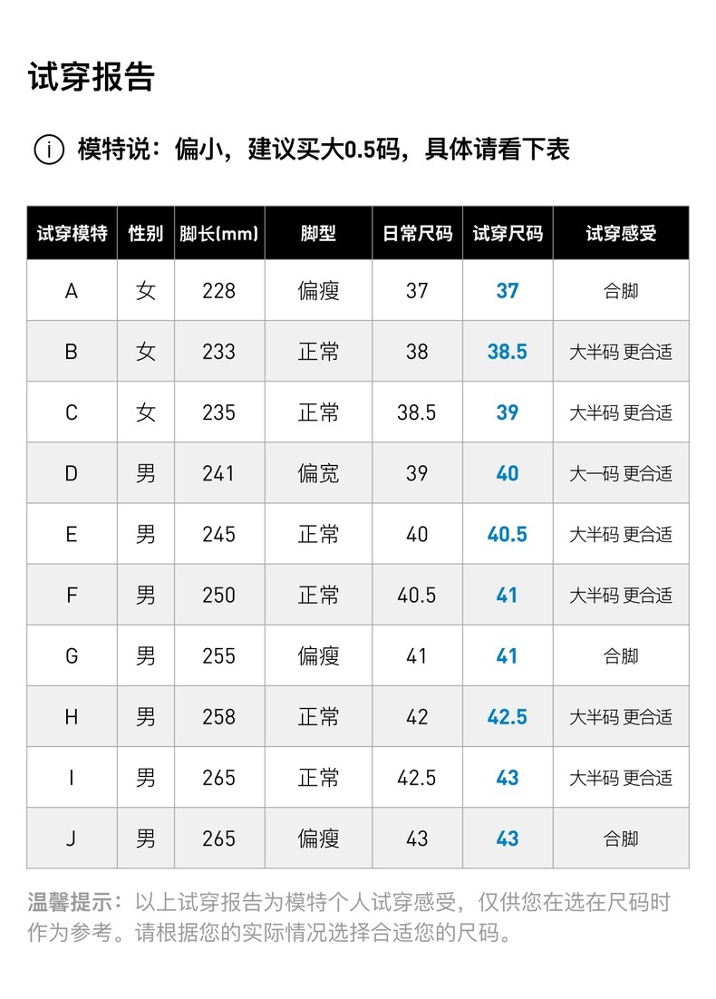 | 中国码(CHN) | 21.5 | 22 | 22.5 | 23 | 23.5 | 23.5 | 24 | 24.5 | 25 | 25.5 | 26 | 26.5 | 26.5 | 27 | 27.5 | 28 | 28.5 | 29 | 29 |