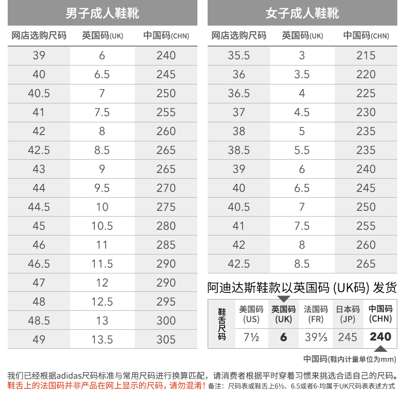 | 中国码(CHN) | 21.5 | 22 | 22.5 | 23 | 23.5 | 23.5 | 24 | 24.5 | 25 | 25.5 | 26 | 26.5 | 26.5 | 27 | 27.5 | 28 | 28.5 | 29 | 29 |