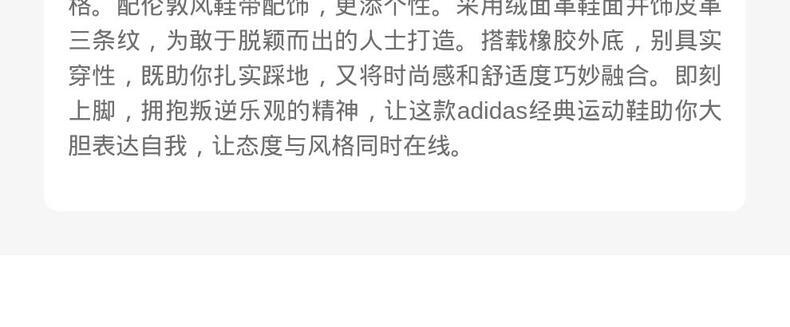 Originals(三叶草),adidas品牌旗下的运动经典系列,在全球各地有众多的追求者和拥有者。该系列以三叶草为标志,如同地球立体三维的平面展开,像一张世界地图,象征着三条纹延伸至全世界。这一系列大量运用20世纪40年代到80年代的元素作为设计灵感,具有强烈的复古感。adidas Originals是对阿迪达斯经典产品的传承。