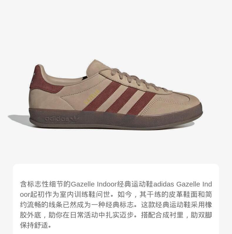 • adidas Originals阿迪三叶草2025中性GAZELLE INDOORORI-CLASSICJQ8387