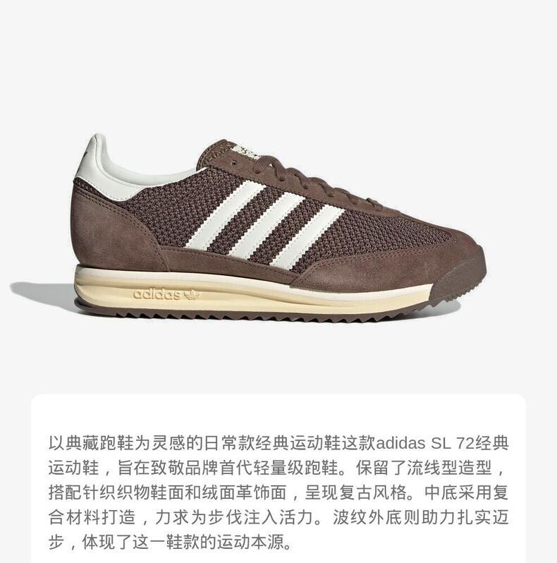 • adidas Originals阿迪三叶草2025中性SL 72 RSORI-RUNNINGJR8774