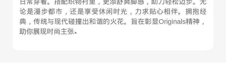 Originals(三叶草),adidas品牌旗下的运动经典系列,在全球各地有众多的追求者和拥有者。该系列以三叶草为标志,如同地球立体三维的平面展开,像一张世界地图,象征着三条纹延伸至全世界。这一系列大量运用20世纪40年代到80年代的元素作为设计灵感,具有强烈的复古感。adidas Originals是对阿迪达斯经典产品的传承。