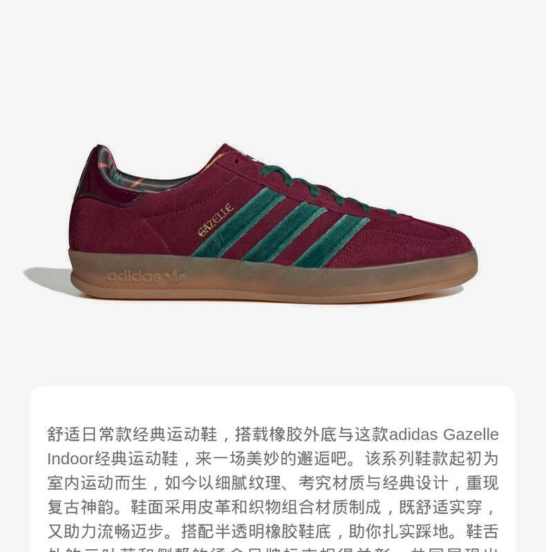 • adidas Originals阿迪三叶草2025中性GAZELLE INDOORORI-CLASSICJR4501