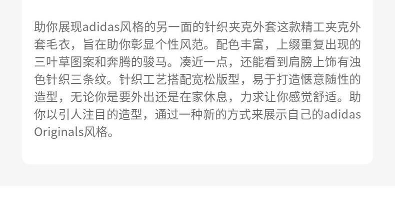 Originals(三叶草),adidas品牌旗下的运动经典系列,在全球各地有众多的追求者和拥有者。该系列以三叶草为标志,如同地球立体三维的平面展开,像一张世界地图,象征着三条纹延伸至全世界。这一系列大量运用20世纪40年代到80年代的元素作为设计灵感,具有强烈的复古感。adidas