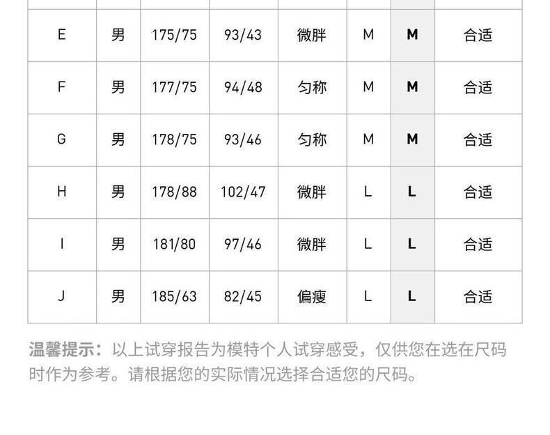 | 参考身高(cm) | 163 | 166 | 169 | 172 | 175 | 178 | 181 | 184 | 186 | 188 | 190 | 190 | 190 |