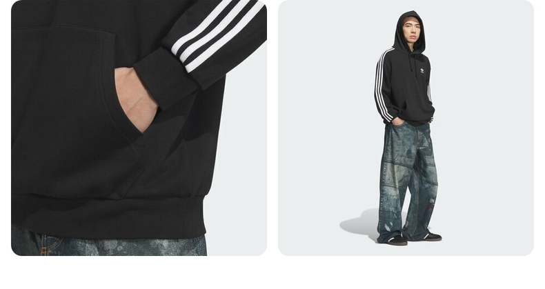 • adidas Originals阿迪三叶草2025男子BAGGY HOODIE针织连帽卫衣KD1860
