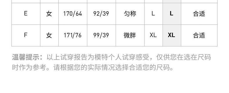 身高/胸围 165/72A 165/76A 165/80A 170/84A 170/88A 170/92A 175/96A 175/100A
