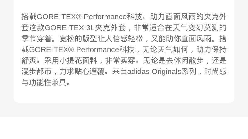 adidas Originals阿迪三叶草2025男子GORE 3L JKT梭织连帽外套KA3942