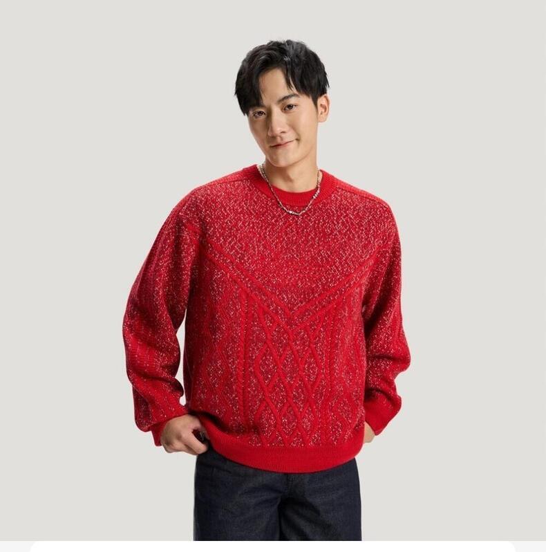• Adidas Original阿迪三叶草2025男子LNY SWEATER U毛线套头衫KT0693