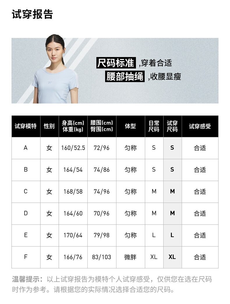 | 身高/腰围 | 165/54A | 165/58A | 165/62A | 170/66A | 170/70A | 170/74A | 175/78A |