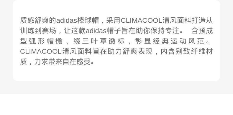 • adidas Originals阿迪三叶草2025中性BB CAP CLIMA OG弯沿帽JX8835