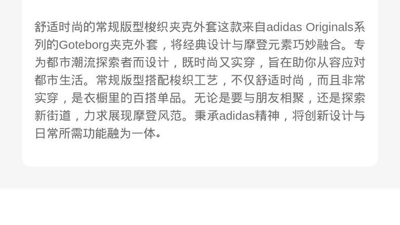 Originals(三叶草),adidas品牌旗下的运动经典系列,在全球各地有众多的追求者和拥有者。该系列以三叶草为标志,如同地球立体三维的平面展开,像一张世界地图,象征着三条纹延伸至全世界。这一系列大量运用20世纪40年代到80年代的元素作为设计灵感,具有强烈的复古感。adidas