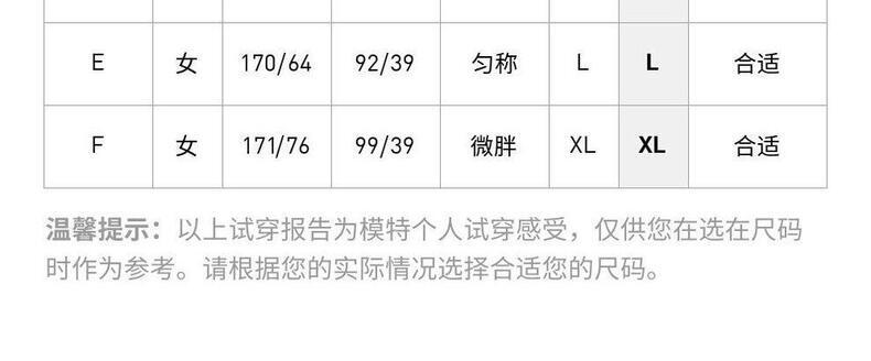 | 身高/胸围 | 165/72A | 165/76A | 165/80A | 170/84A | 170/88A | 170/92A | 175/96A | 175/100A |