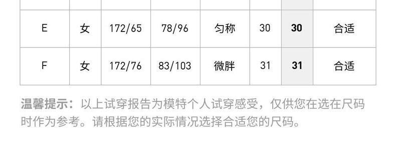 身高/腰围 165/54A 165/58A 165/62A 170/66A 170/70A 170/74A 175/78A