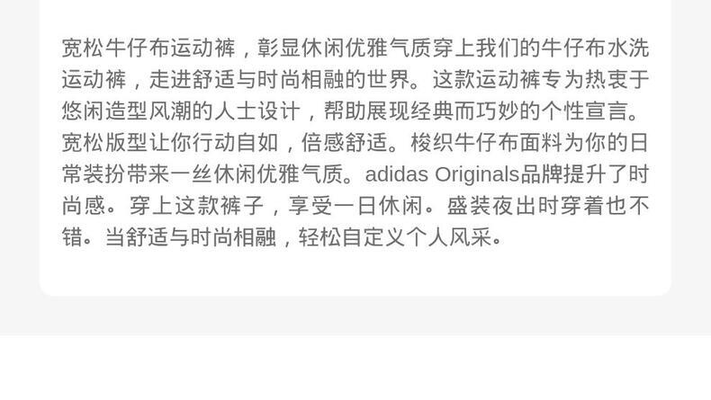 • adidas Originals阿迪三叶草2025男子DENIM W PANT牛仔长裤KC2636