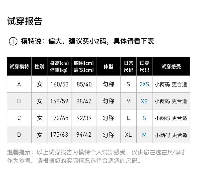 | 尺码 | 2XS | XS | S | M | L | XL | 2XL | 3XL |