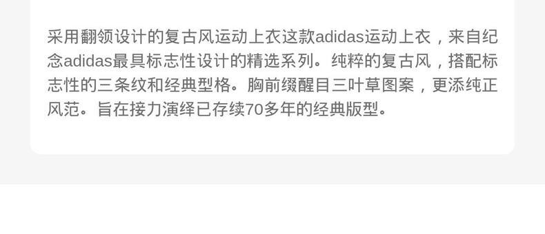 Originals(三叶草),adidas品牌旗下的运动经典系列,在全球各地有众多的追求者和拥有者。该系列以三叶草为标志,如同地球立体三维的平面展开,像一张世界地图,象征着三条纹延伸至全世界。这一系列大量运用20世纪40年代到80年代的元素作为设计灵感,具有强烈的复古感。adidas Originals是对阿迪达斯经典产品的传承。