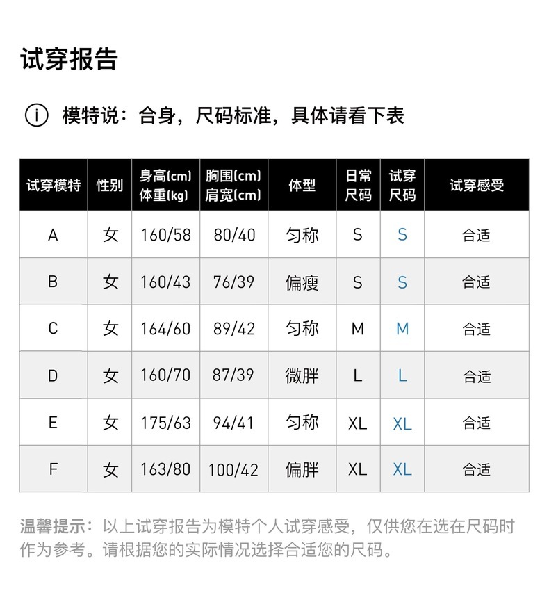 身高/胸围 165/72A 165/76A 165/80A 170/84A 170/88A 170/92A 175/96A 175/100A