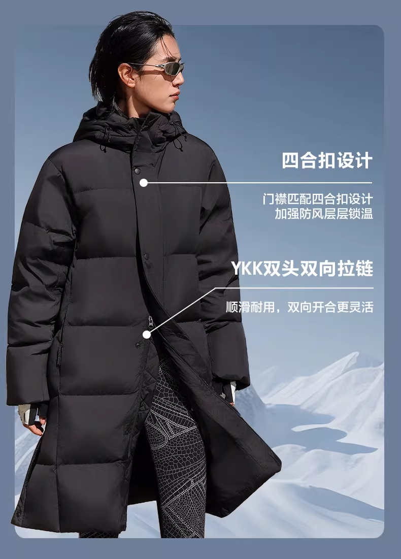 | 版型:标准 | 款式季节:冬季 | 领型:连帽 | 性别:中性 | 运动款式:长款羽绒 |