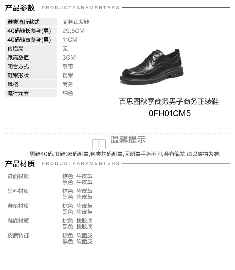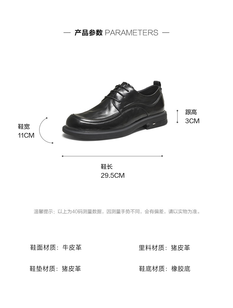 | 风格:商务 | 色系:黑色 | 跟高数值:3CM | 40码鞋宽参考(男):11CM | 性别:男子 |
