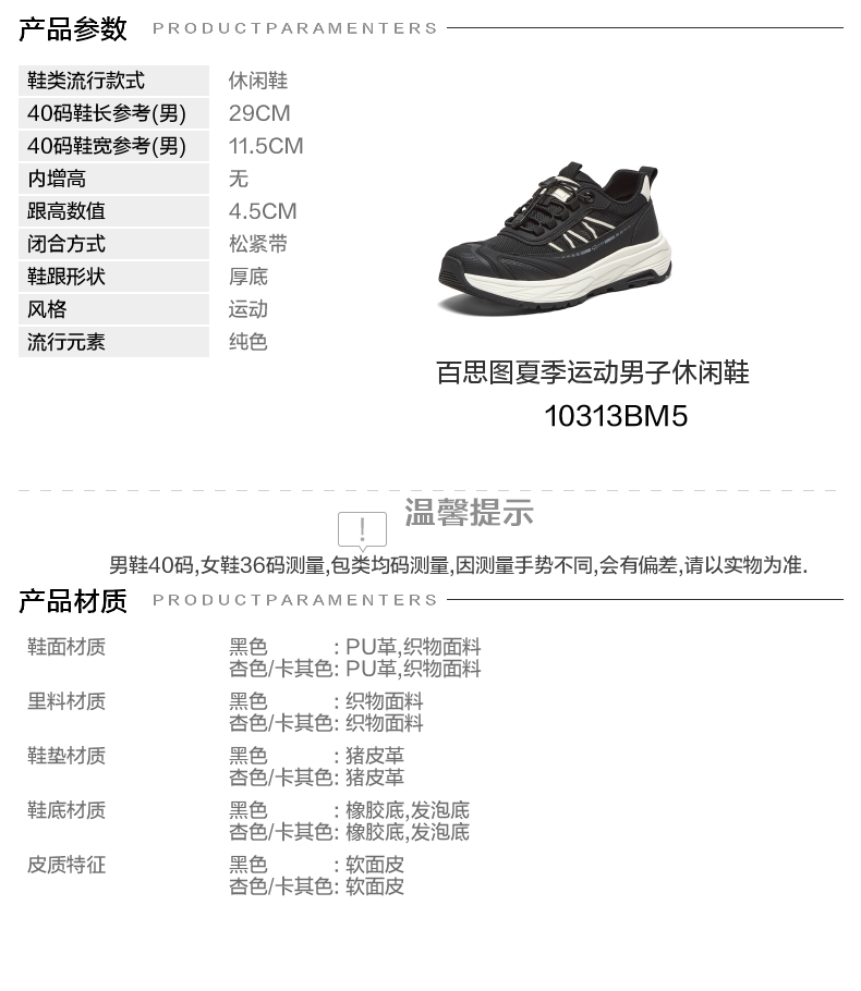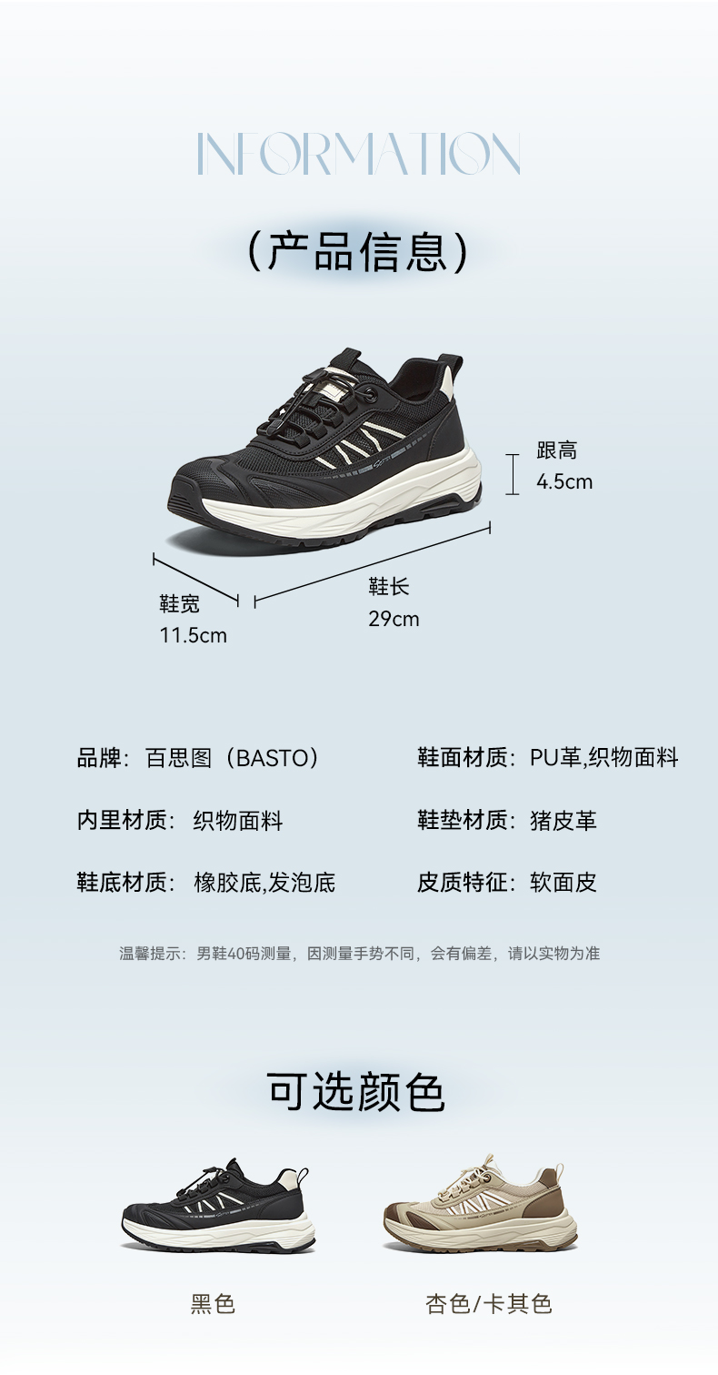 | 风格:运动 | 色系:黑色 | 跟高数值:4.5CM | 40码鞋宽参考(男):11.5CM | 性别:男子 |