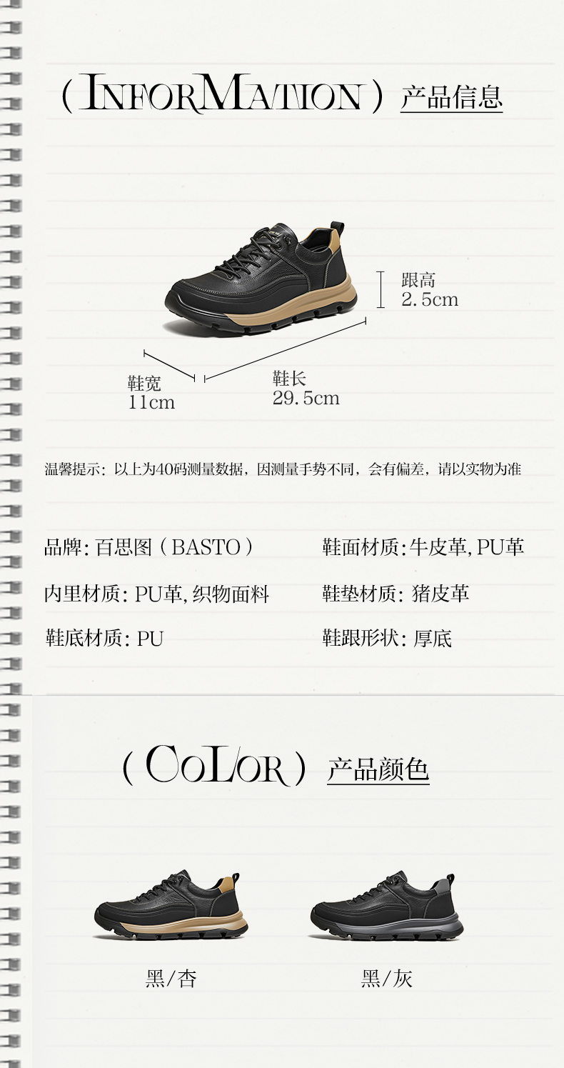 | 40码鞋长参考(男):29.5CM | 鞋帮:低帮 | 鞋头款式:圆头 | 鞋底材质:PU | 鞋面图案:纯色 |