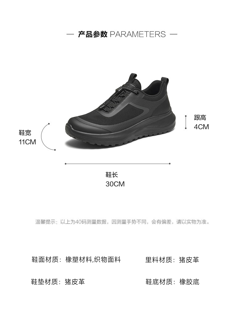 | 风格:运动 | 色系:黑色 | 跟高数值:4CM | 40码鞋宽参考(男):11CM | 性别:男子 |