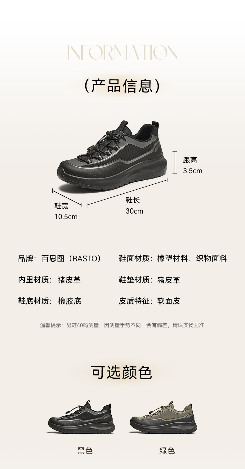 | 风格:运动 | 色系:黑色 | 跟高数值:3.5CM | 40码鞋宽参考(男):10.5CM | 性别:男子 |