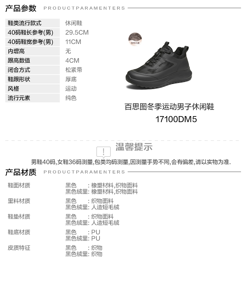 | 风格:运动 | 色系:黑色 | 跟高数值:4CM | 40码鞋宽参考(男):11CM | 性别:男子 |