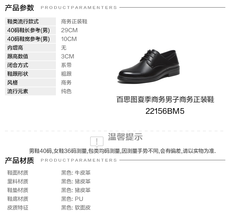 | 鞋头款式:圆头 | 执行标准:皮鞋QB/T1002-2015 | 跟高范围:中跟鞋(3-5CM) | 鞋面图案:纯色 | 鞋跟形状:粗跟 |