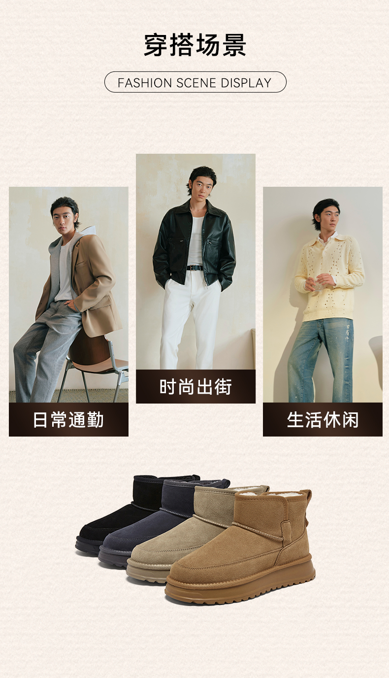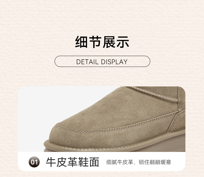 | 闭合方式:套脚 | 40码鞋宽参考(男):12.5CM | 靴筒口围:32.5CM | 上市时间:2025年冬季 | 鞋类流行款式:雪地靴 |