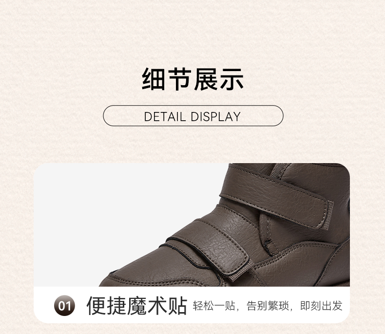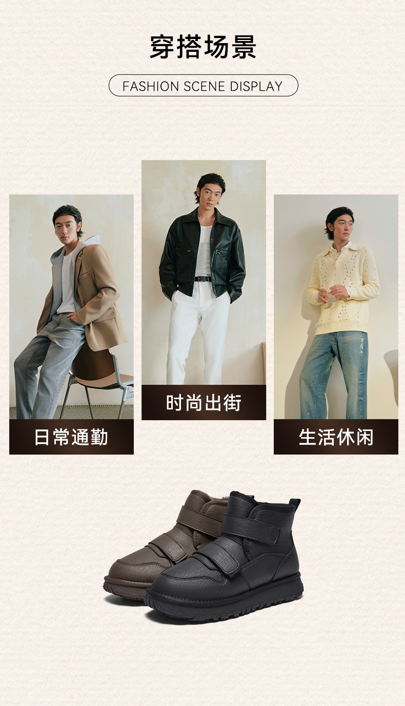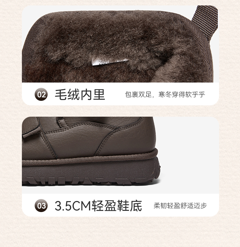 | 闭合方式:魔术贴 | 40码鞋宽参考(男):11.5CM | 靴筒口围:31CM | 上市时间:2025年冬季 | 鞋类流行款式:雪地靴 |