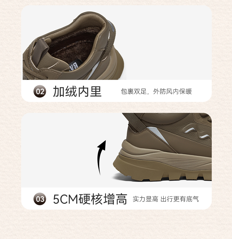 | 风格:运动 | 色系:卡其 | 跟高数值:5CM | 40码鞋宽参考(男):12CM | 性别:男子 |