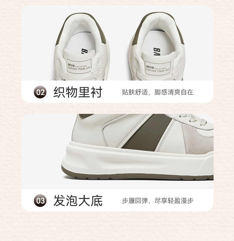 BASTO(百思图),品牌拥有17年历史,秉承优雅、甜美、清新的设计理念,主张“好嫁风”的产品风格,将甜美俏丽的少女情怀融合优雅气质的时尚品味,塑造出唯美优雅、受欢迎的女鞋款式。主打以女性温柔与亲和力为特色的流行时尚产品,糅合雅致又富有亲和力的裸粉色调,淑媛端庄、清新甜美。目前品牌已开设线下门店达1400多家。