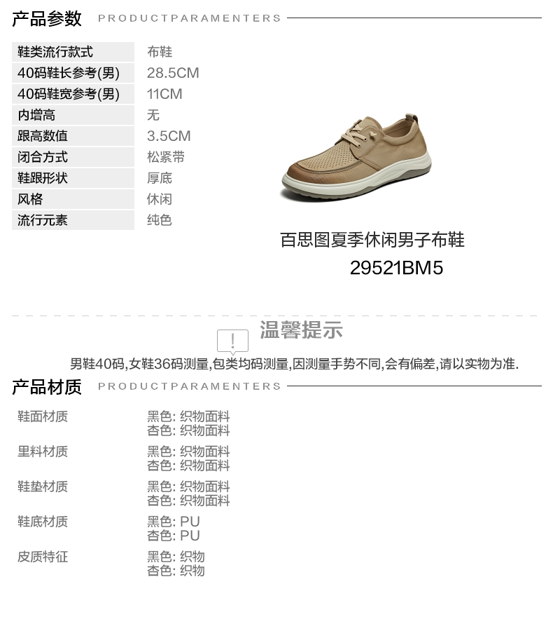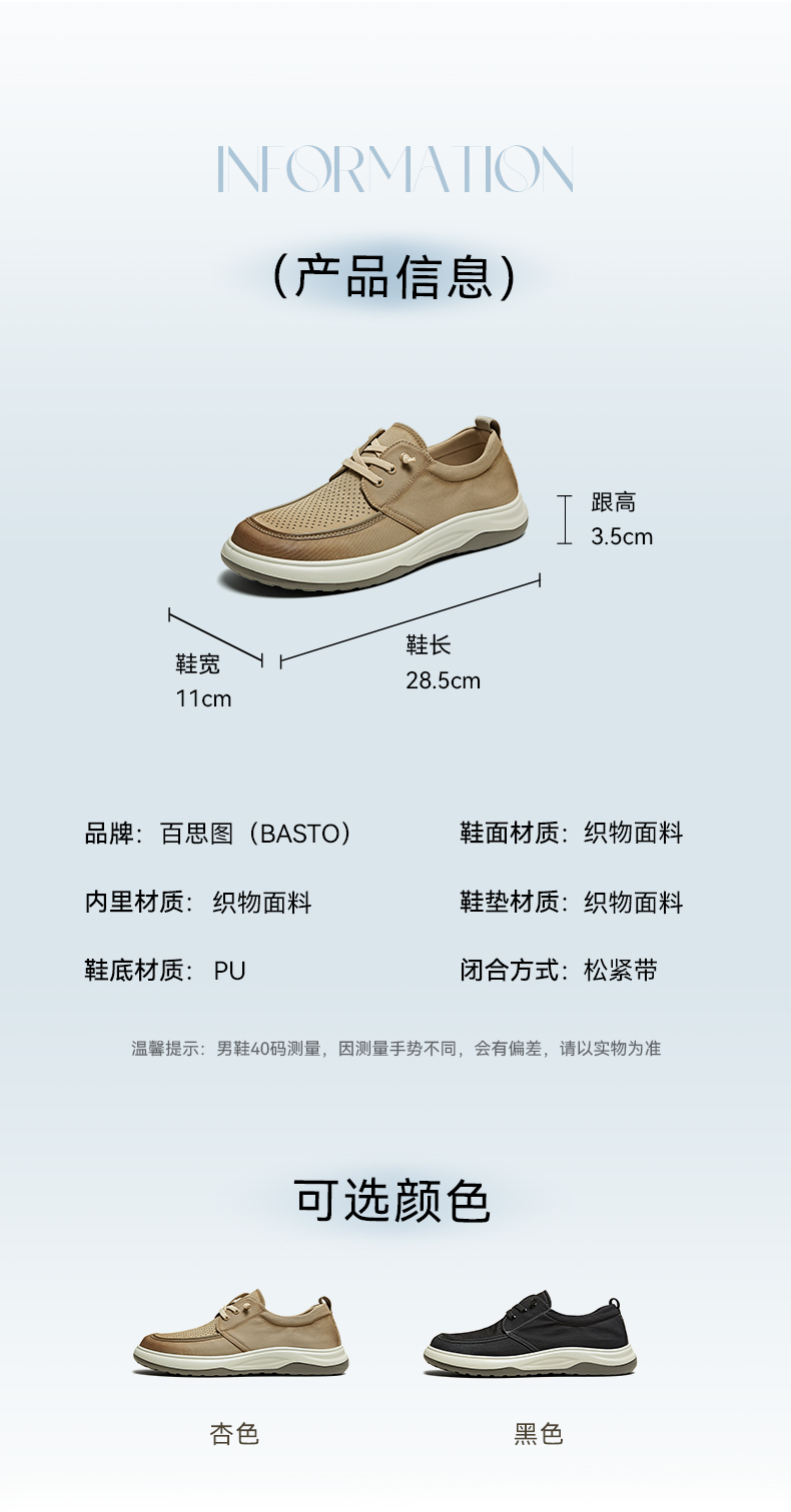 | 风格:休闲 | 色系:杏色 | 跟高数值:3.5CM | 40码鞋宽参考(男):11CM | 性别:男子 |