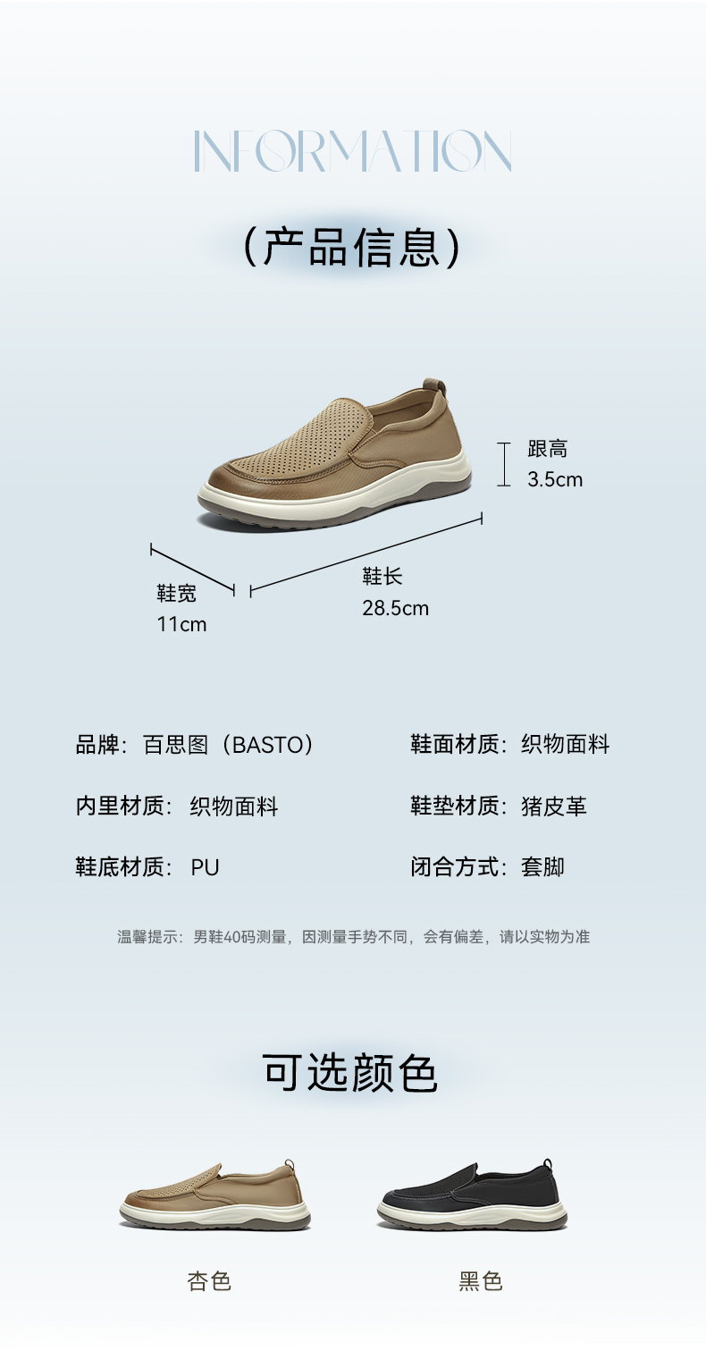 | 鞋面材质:织物面料 | 适用场合:日常休闲 | 闭合方式:套脚 | 所在区域:电子商务 | 40码鞋宽参考(男):11CM |